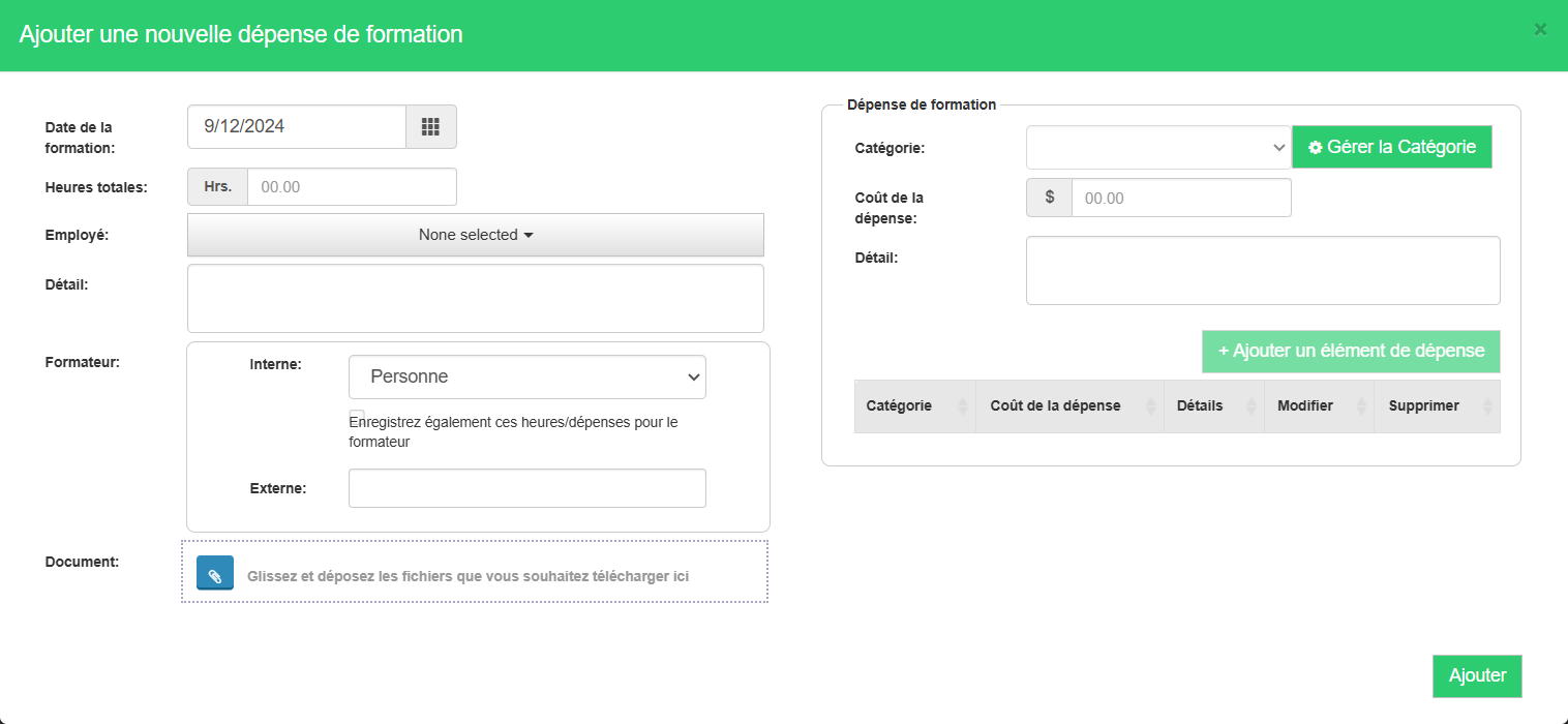 Frais de formation – Comment ajouter/modifier/déclarer les dépenses